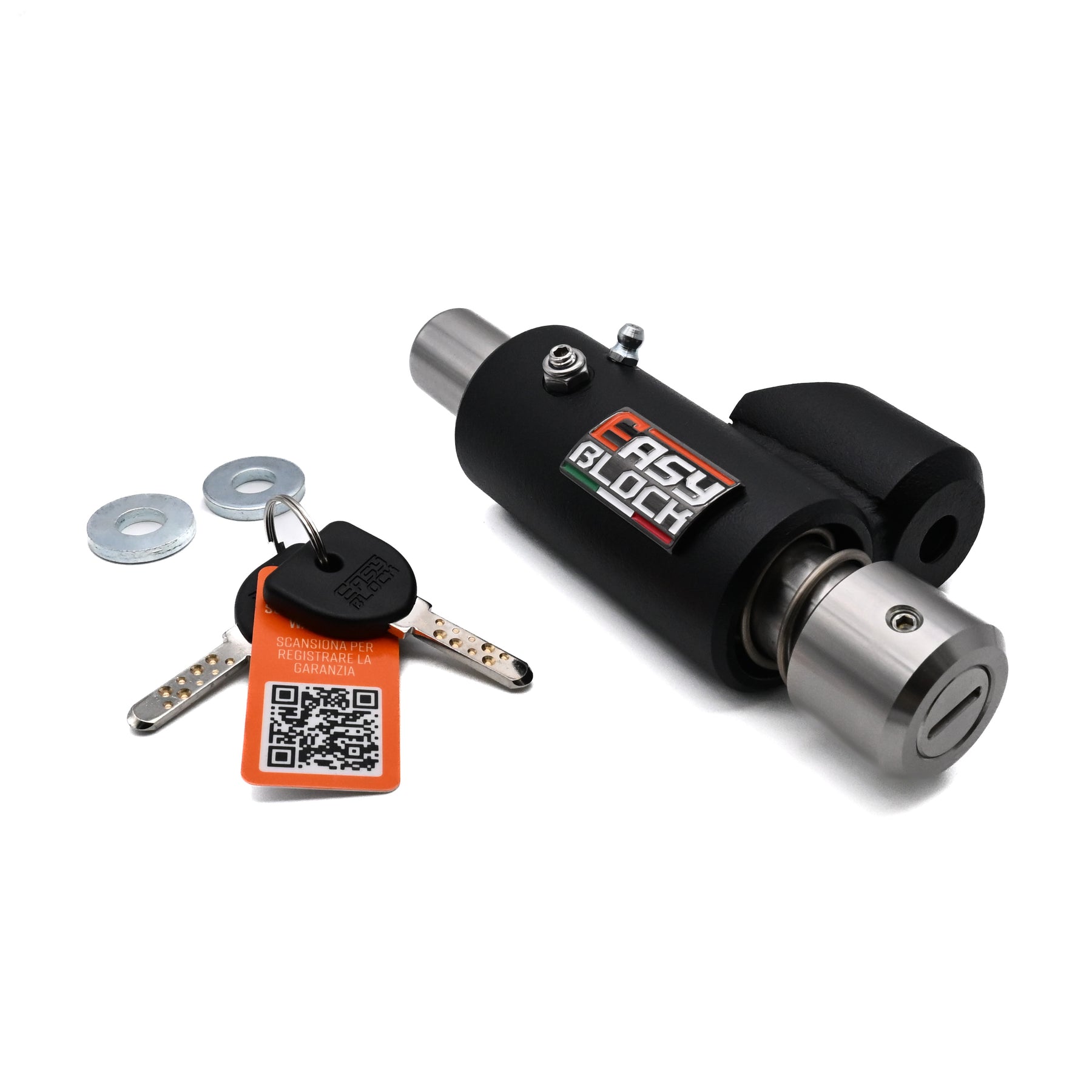I bloccaruota EasyBlock sono dotati di ungello per la lubrificazione ideale per una rapida manutenzione del prodotto.